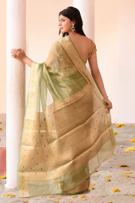 Buy_Naaritva India_Green Tissue Zari Handwoven Banarasi Saree With Running Blouse _Online_at_Aza_Fashions