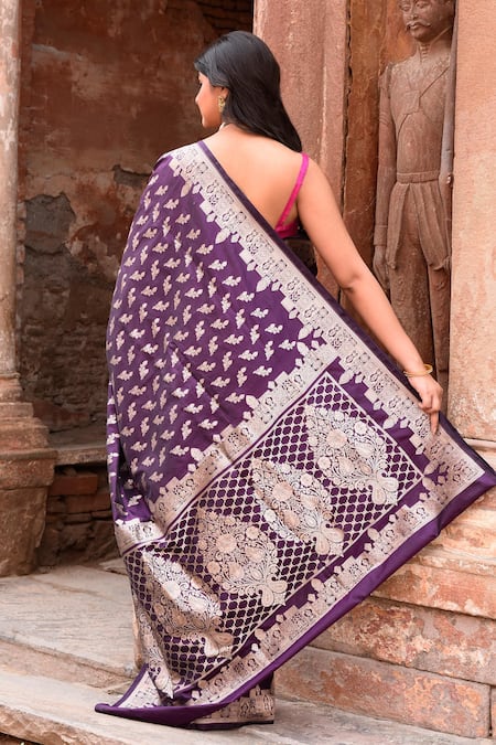 Buy_Naaritva India_Purple Zari Handwoven Work Banarasi Saree With Running Blouse _Online_at_Aza_Fashions