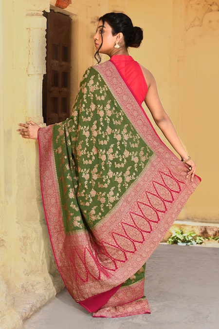 Buy_Naaritva India_Green Crepe, Chiffon, Silk Handwoven Work Banarasi Saree With Running Blouse _Online_at_Aza_Fashions