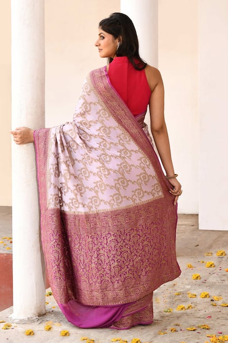 Buy_Naaritva India_Purple Crepe, Chiffon, Silk Handwoven Work Banarasi Saree With Running Blouse _Online_at_Aza_Fashions