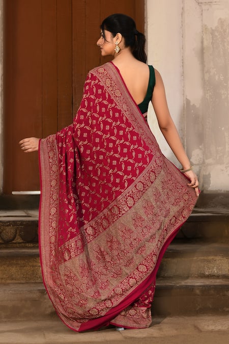 Buy_Naaritva India_Pink Crepe, Silk Zari Hot Banarasi Saree With Running Blouse
