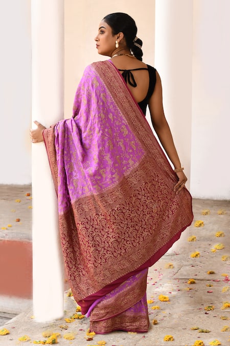Buy_Naaritva India_Pink Chiffon, Silk, Crepe Hot Handwoven Banarasi Saree With Running Blouse _Online_at_Aza_Fashions