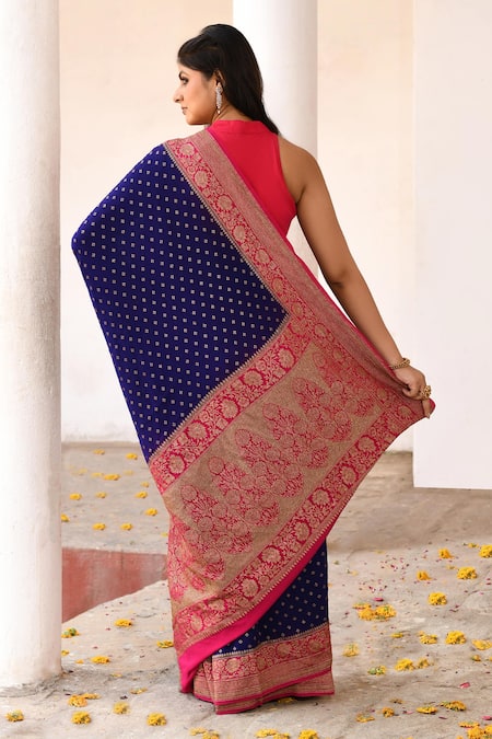Buy_Naaritva India_Navy Crepe, Silk, Chiffon Blue Handwoven Banarasi Saree With Running Blouse _Online_at_Aza_Fashions