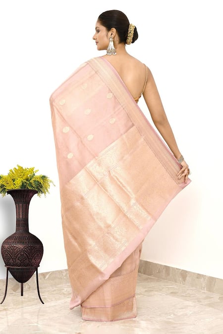 Pink Tissue Embroidery Tear Drop Woven Banarasi Saree With Running Blouse
