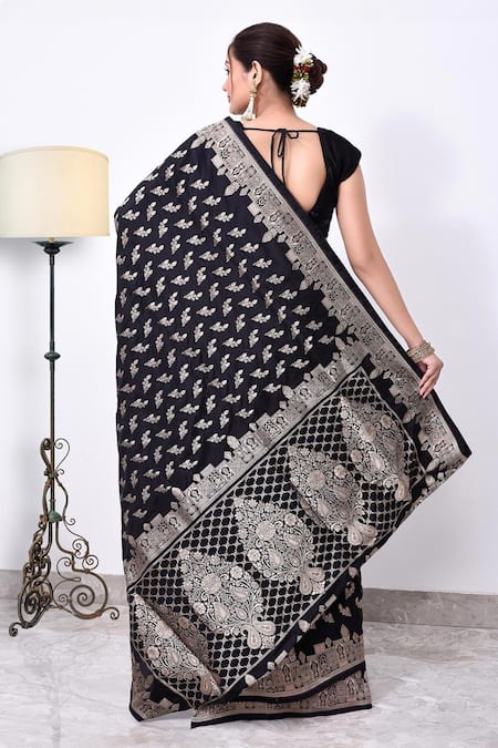 Black Kota Doria Zari Woven Butti Banarasi Saree With Running Blouse