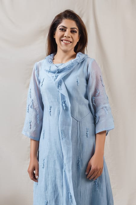Blue kurta with all over embroidered floral tassel detail. Comes with inner and pant.
