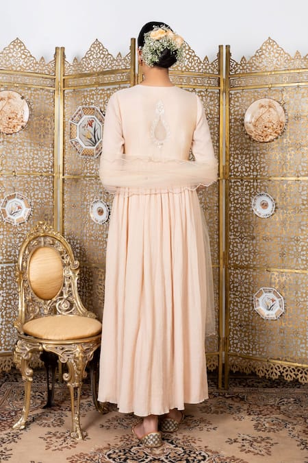 Beige Anarkali Chanderidupatta Net Dori And Abla Work Chanderi With Dupatta