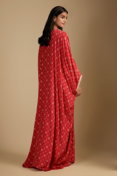 Red Crepe Sequins, Embroidery V-neck Designer Kaftan