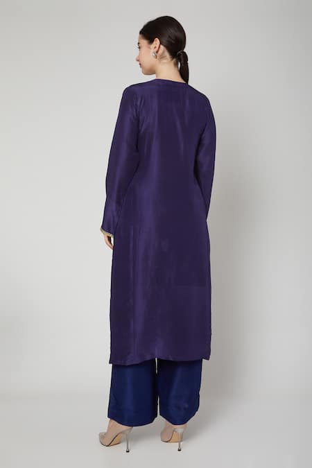 Blue Habutai , Organza Keyhole Embroidered Kurta Set