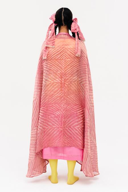 Buy_Naina Jain_Pink Silk, Linen Round Neck Khari Shaded Dress With Asymmetric Arashi Cape_Online_at_Aza_Fashions