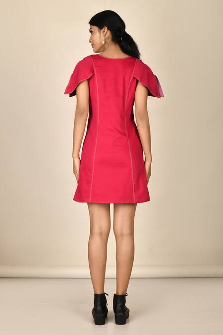 Pink Embroidered Stitchline Round Flared Sleeve Dress