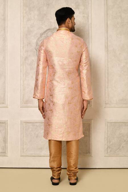 Pink Kurta Linen Silk Woven Flower Pattern And Pyjama Set