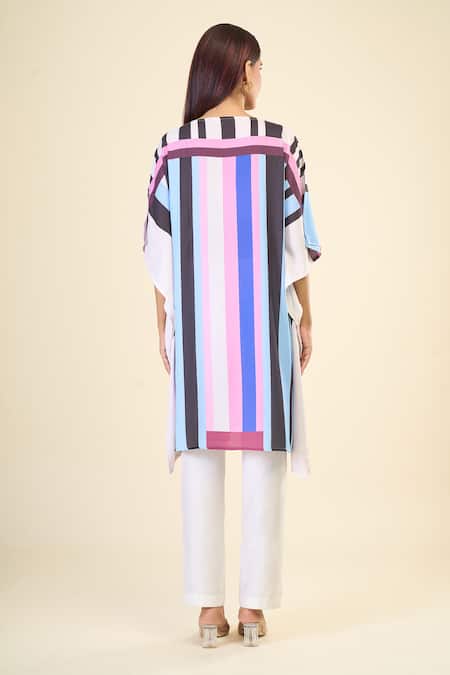 Buy_Naintara Bajaj_Multi Color Georgette Boat Neck Stripe Print Asymmetric Short Kaftan _at_Aza_Fashions