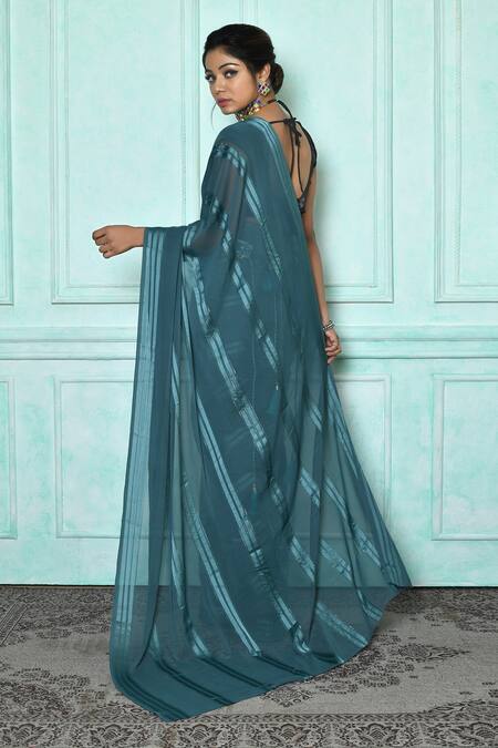 Blue Georgette Mirrors Teal Striped Saree