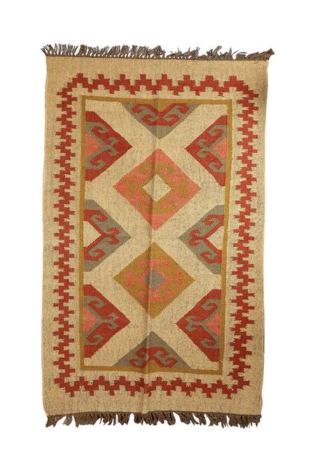 Product Finish: Kilim, Hand woven geometric pattern, Dimensions (in ft): 3 x 5, Weight (in kgs): 1.7, Thickness (in mm): 5, Note: Only the rug shown in the image is being sold