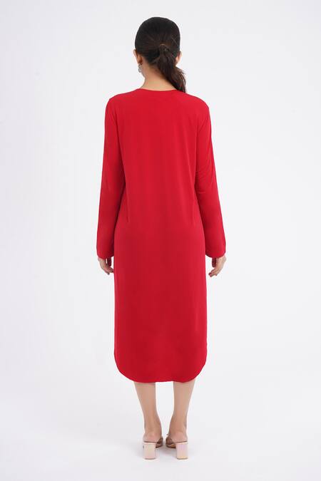 Buy_Namrata Joshipura_Red Cotton Embroidery Round Neck Autumn Fern Asymmetric Tunic Dress_at_Aza_Fashions