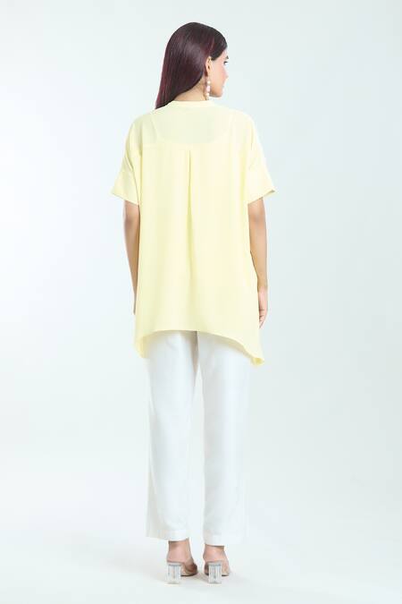 Yellow Embroidery Collared Dahlia Handkerchief Top