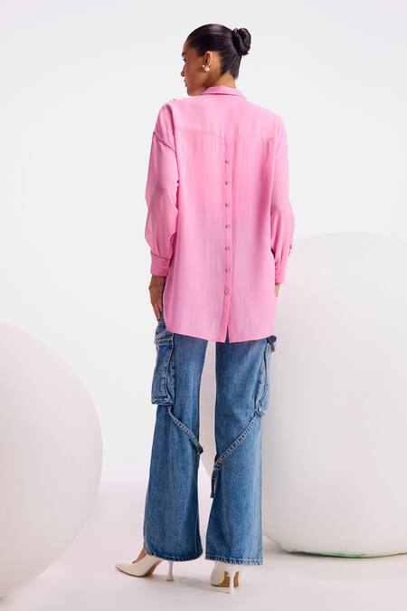 Pink Georgette Embellished Floral Collar Nigella Boxy Shirt