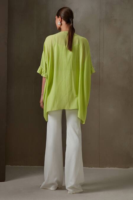 Green Textured Georgette Embroidery Thread And Sequin Trellis Kaftan Top