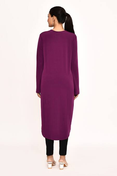 Purple high-low hem tunic featuring cutdana embroidered leaves pattern