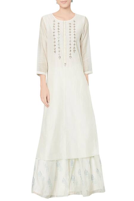 Natural Chanderi Mull Jiyera Kurta With Palazzo Pants
