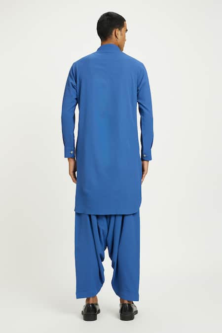 Blue Cotton Cerulean Pathani Kurta With Salwar