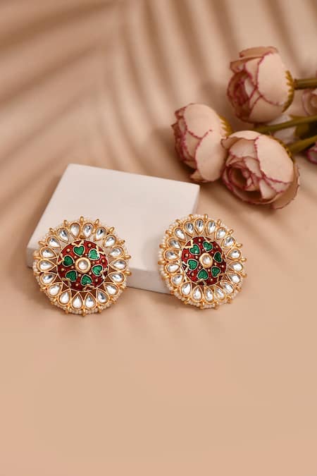 Buy_Nazaakat By Samara Singh_Maroon Stones, Beads, Embroidery Enamelled Studded Round Studs _Online_at_Aza_Fashions