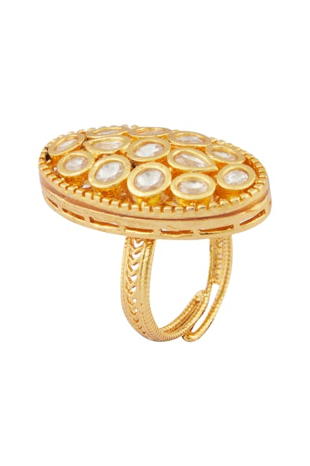 Gold toned ring featuring a circular design with kundan embellishments