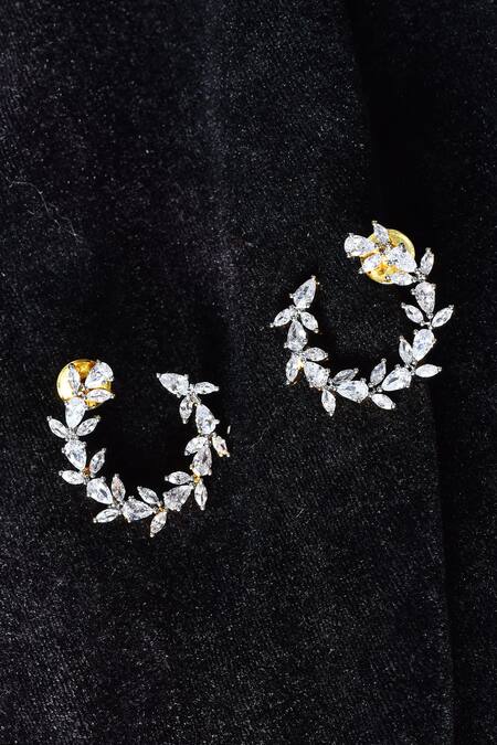 Shop_Nayaab By Aleezeh_Gold Plated Stones Leaf Vine Pattern Earrings_Online_at_Aza_Fashions