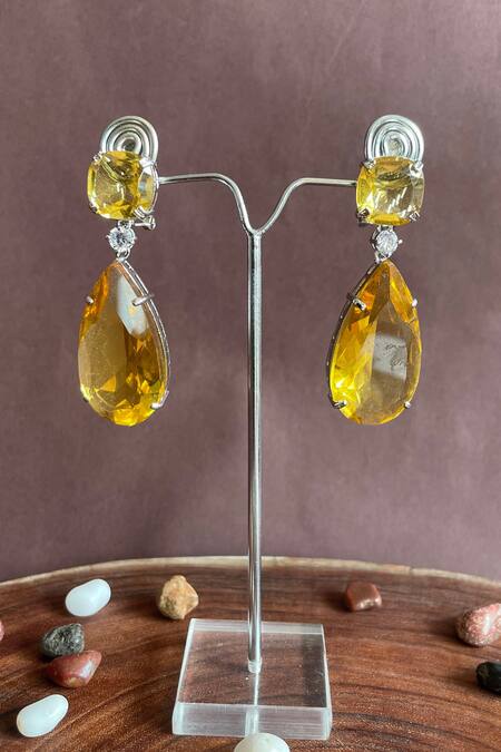 Silver doublet danglers featuring citrine cubic zirconia and semi-precious stone embellishments