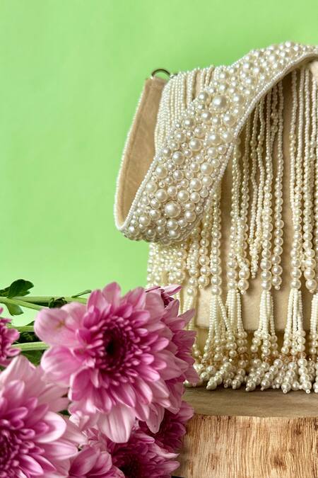 Off White Pearls Gilt Cascade Tassel Embellished Potli