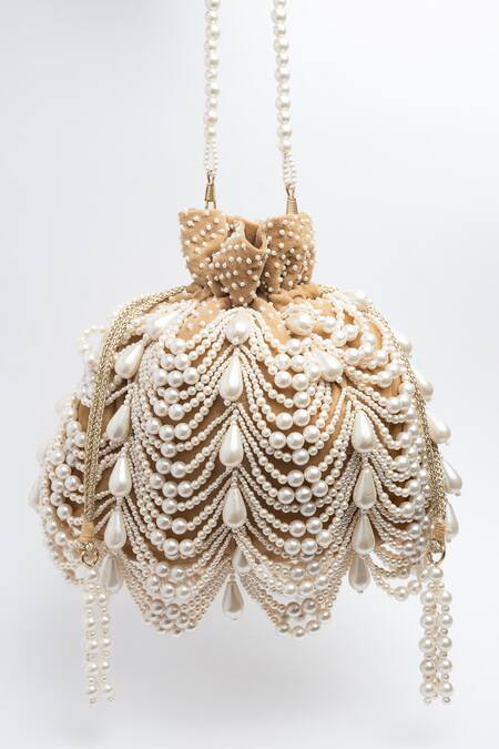 Buy_Nayaab By Sonia_Brown Pearls Oyster Velvet Embellished Potli _Online_at_Aza_Fashions
