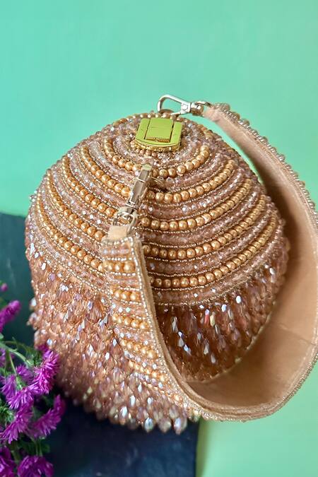 Gold Pearls, Crystals Pristine Embellished Potli Bag