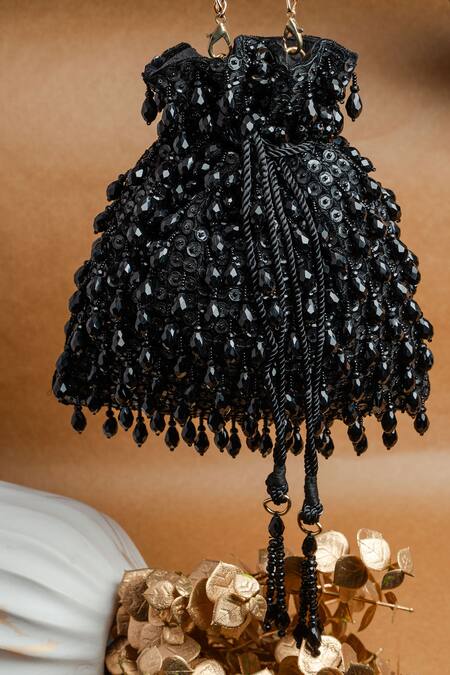Black Beads, Sequins Crystalline Noir Potli Bag