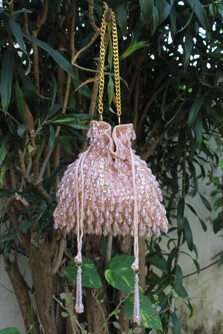 Buy_Nayaab By Sonia_Pink Beads, Sequins, Tassels Pristine Rosette Embellished Potli