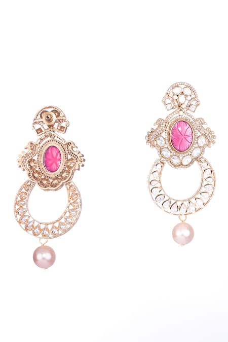 Gold Plated Pearls, Stones And Polki Chandbali Earrings