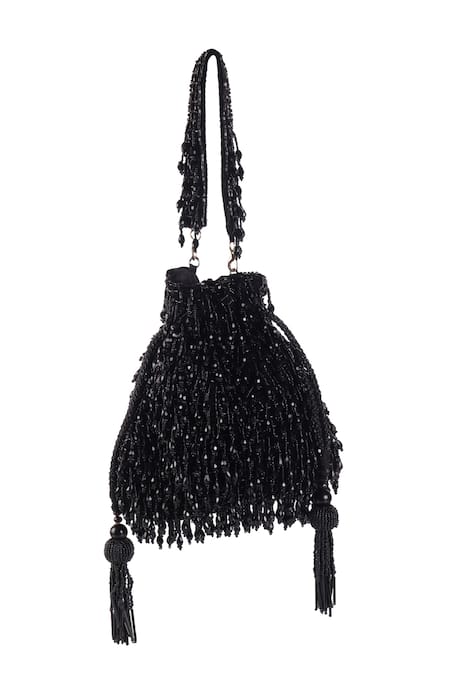 Black Beads, Sequins, Tassels And Embellished Potli Bag