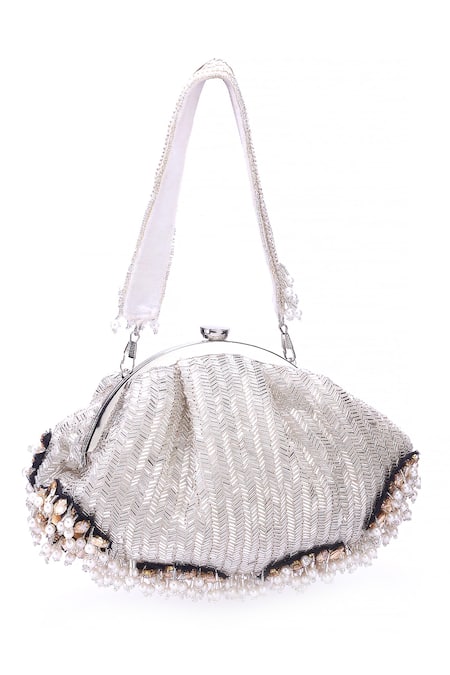 Silver Beads, Pearls, Crystals, Stones Beaded Embellished Batua Bag