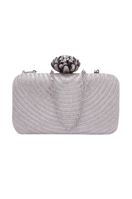 Silver Beads Fan Pattern Clutch With Detachable Sling
