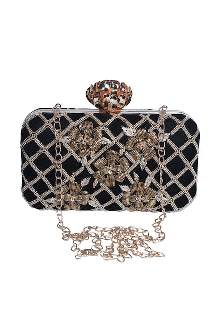 Buy_Nazaakat By Samara Singh_Black Beads, Sequins, Embroidery Floral And Grid Pattern Clutch _Online_at_Aza_Fashions