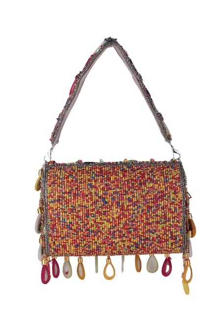 Multi Color Beads, Sequins, Tassels, Mirrors Floral And Embellished Flap Bag