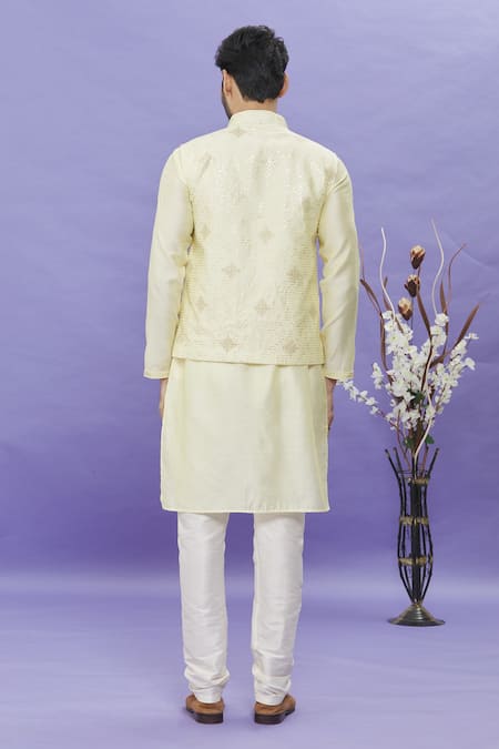 All over floral linear thread embroidery, Front placket closure, Mandarin collar design