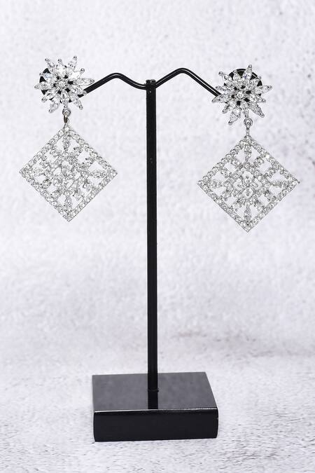 Buy_Nayaab By Aleezeh_Silver Plated Faux Diamond Geometric Drop Earrings_Online_at_Aza_Fashions