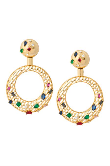 Multicolor embellished earrings featuring a circular design with intricate detailing.