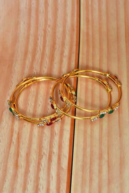 Buy_Nazaakat By Samara Singh_Multi Color Stones Studded Bangles - Set Of 4_Online_at_Aza_Fashions