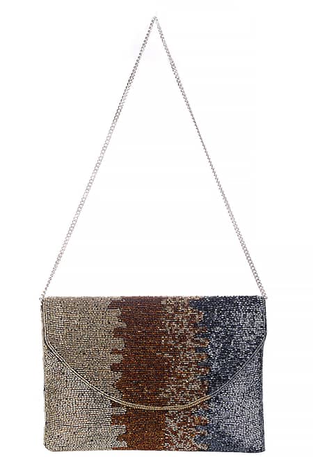 Ombre pattern created with bead embellishments, Detachable silver-toned chain sling