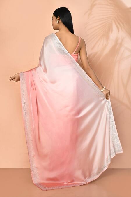 Buy_Samyukta Singhania_Pink Satin Stones Pastel Ombre Saree With Running Blouse_Online_at_Aza_Fashions