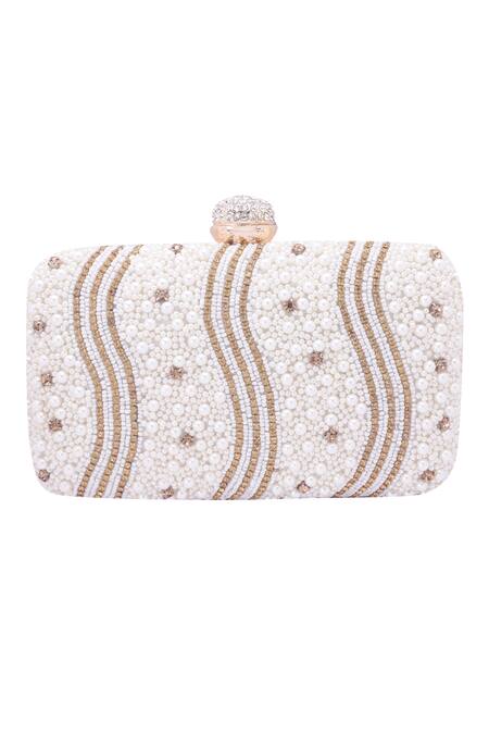 White Pearls, Rhinestones, Beads And Stone Embellished Clutch