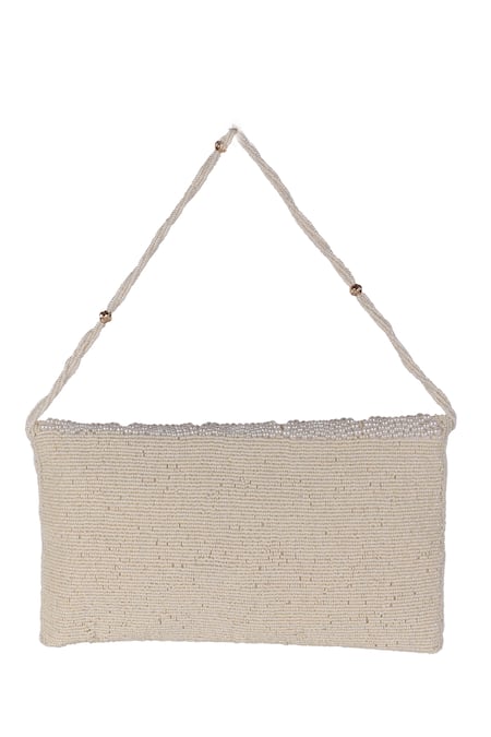 White Pearls, Beads Embellished Flap Bag
