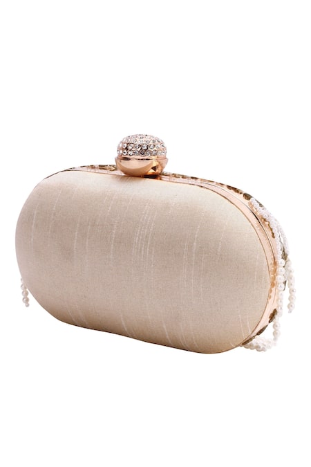 Gold Sequins, Pearls, Rhinestones, Beads And Embellished Clutch